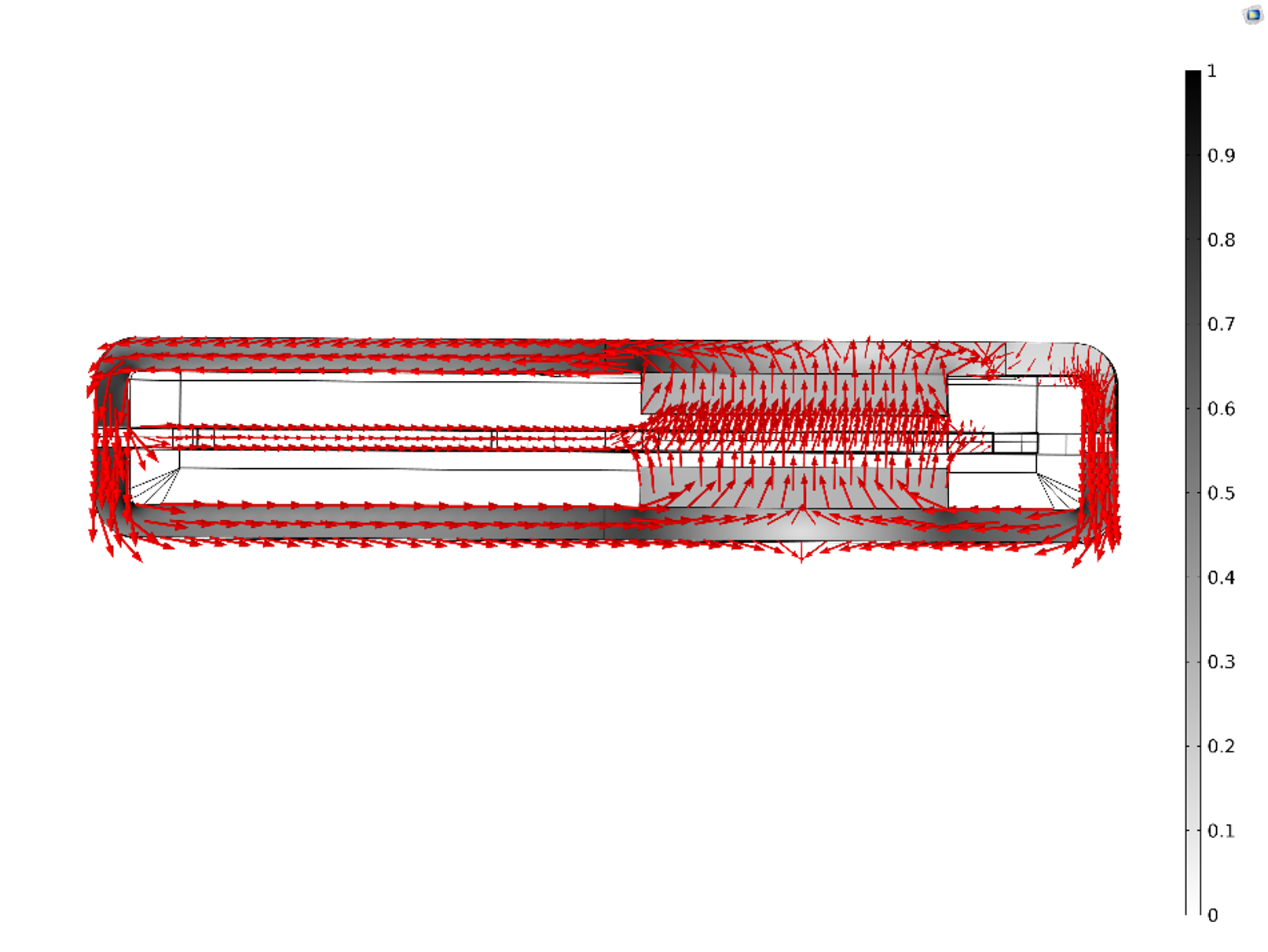 "To analyze this interaction, we created a model in COMSOL® to analyze the interference of the magnetic flux due to the external magnets with the magnetic flux generated by the BA receiver used to displace the armature. The simulation results showed that when an additional magnetic flux is added by the external magnet to the magnetic path inside a receiver, the flux changes the magnetic reluctances of the entire magnetic circuit and causes the receiver magnets to demagnetize." (Figure 3)